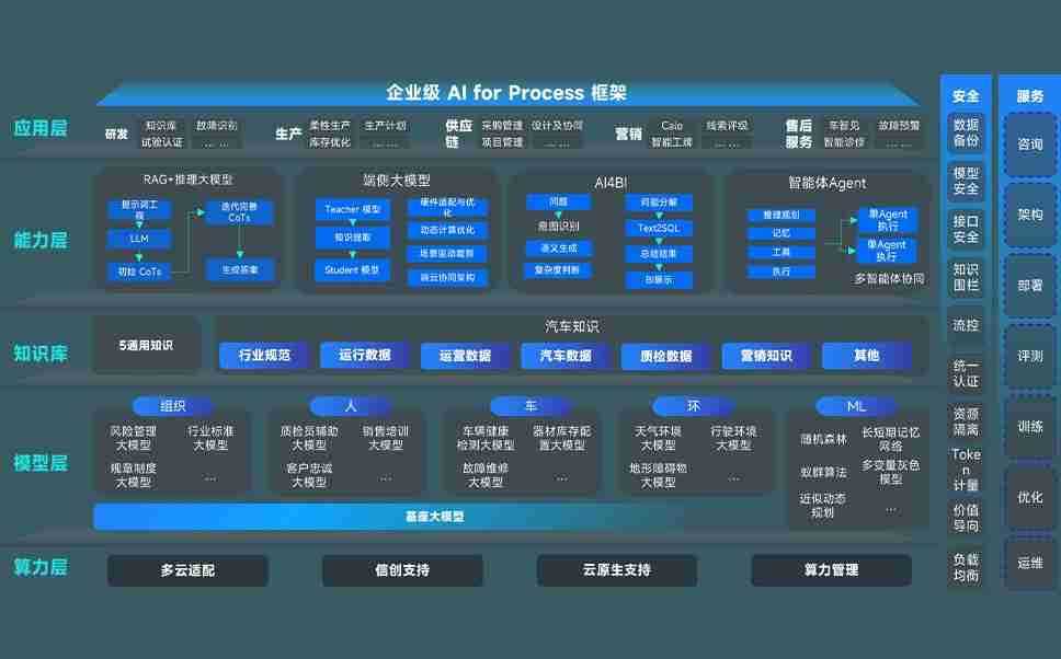 端到端的一站式AI工作空间深度融合了从企业战略规划到日常经营的全流程业务板块,,,定向解决车企内部领域多、、部门多、、链条长、、、、场景碎片化等难题,,,,支持车企快速构建以AI为核心的生产力写作体系,,实现任务执行与AI能力的无缝集成与交互